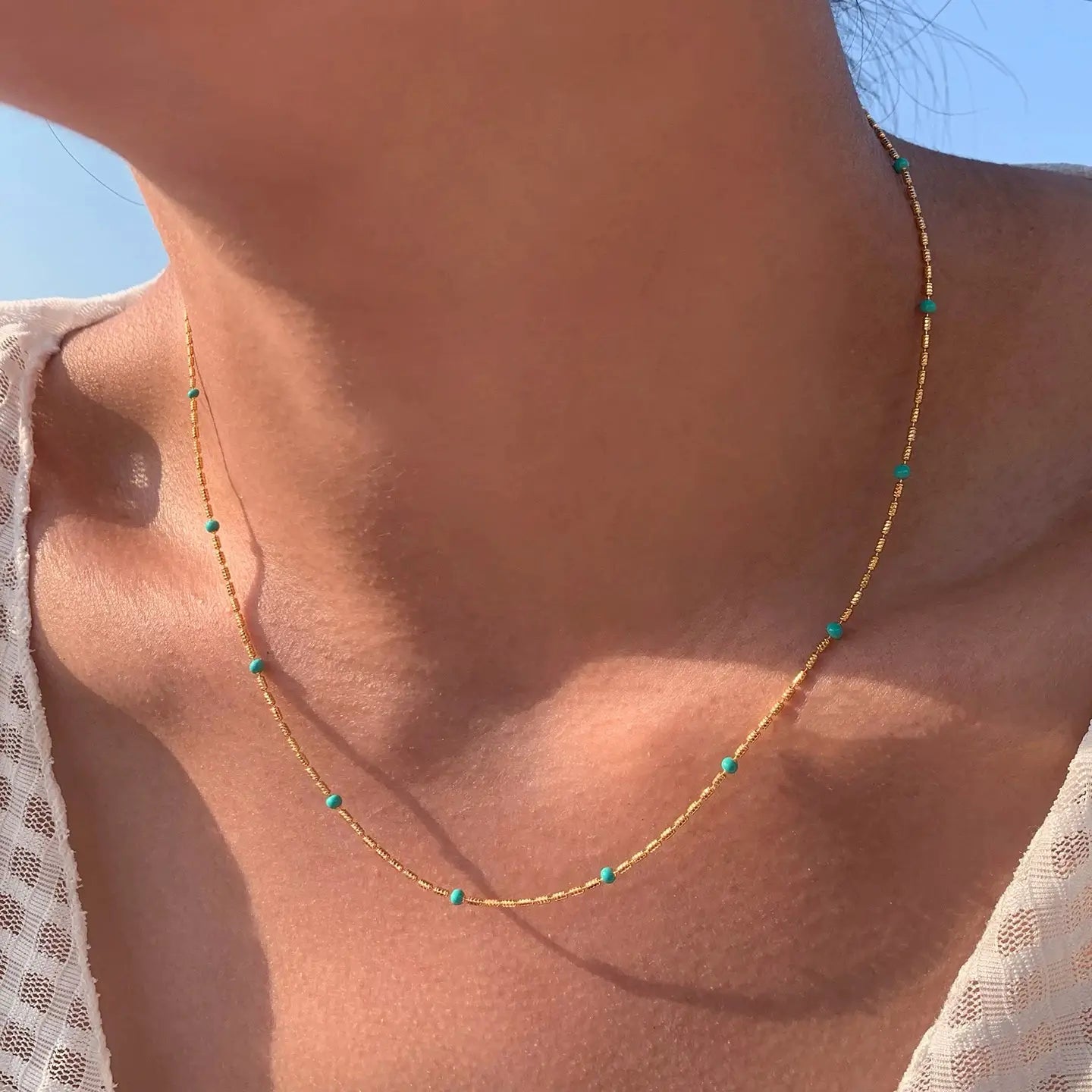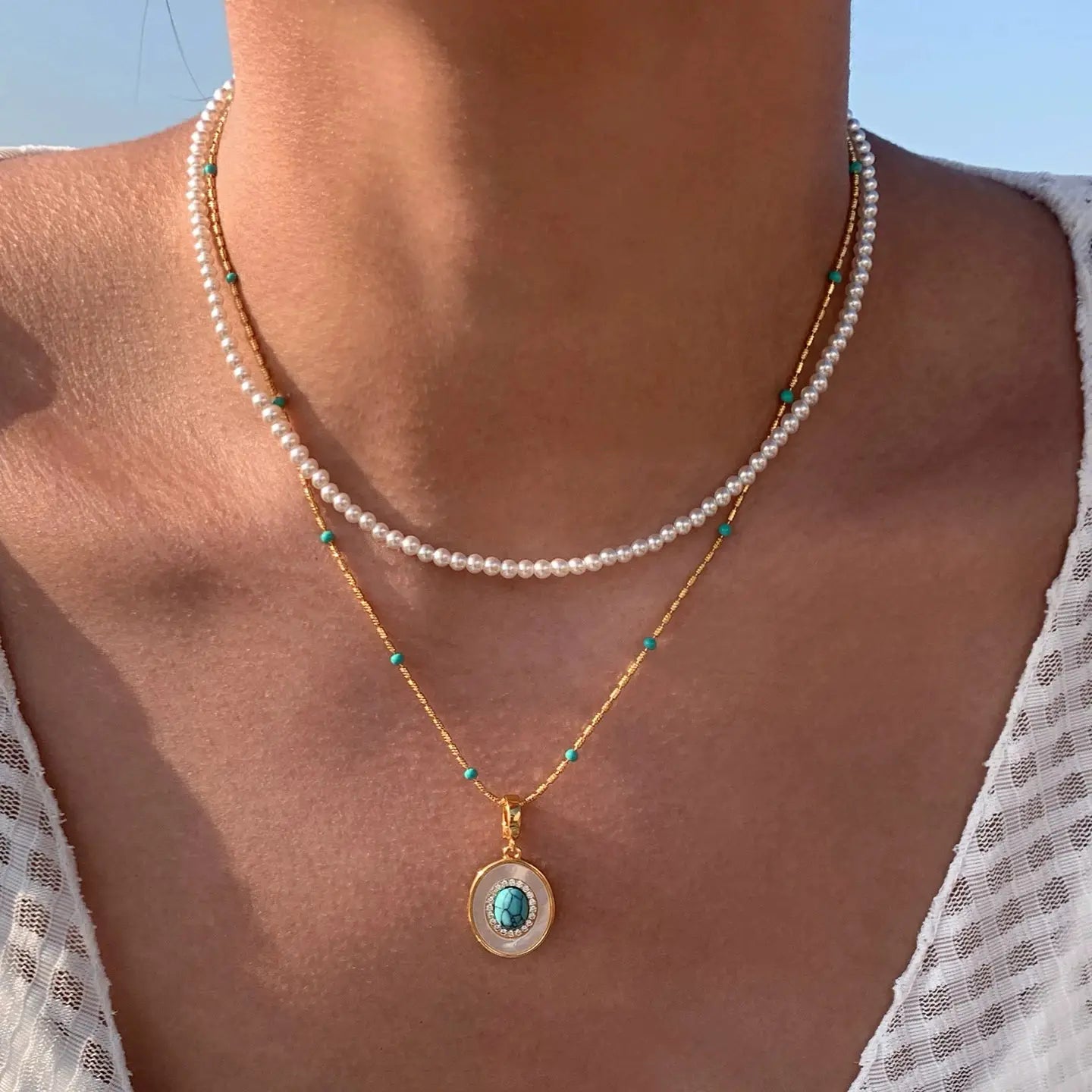 The One1| Natural Turquoise and Pearl Necklace for woman, Layered style
